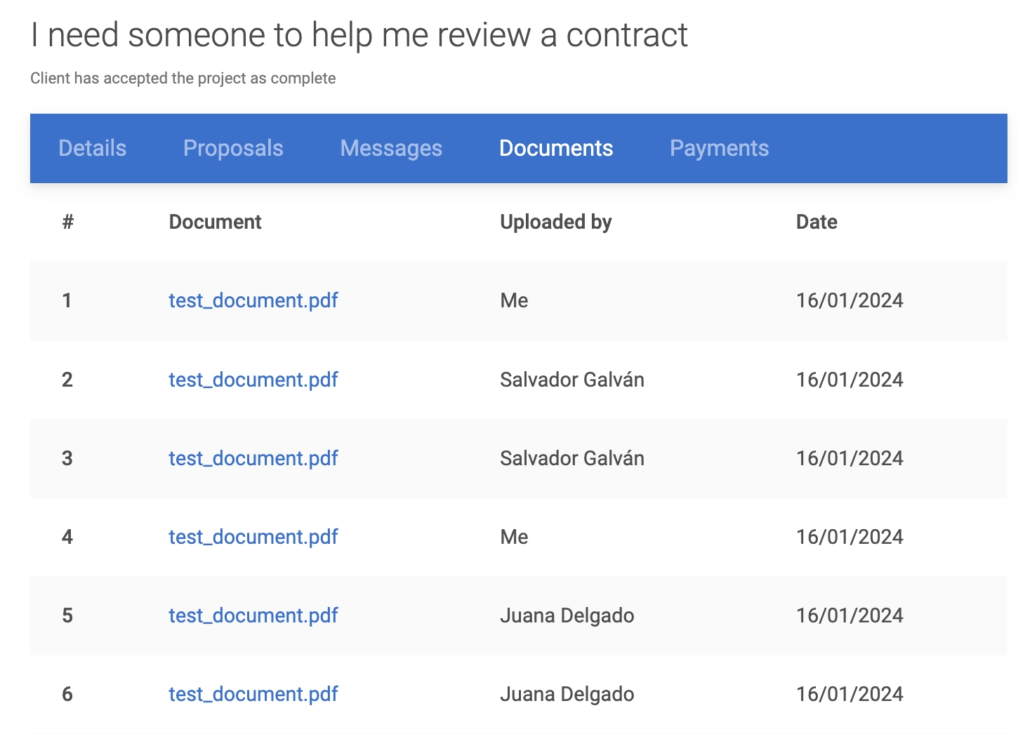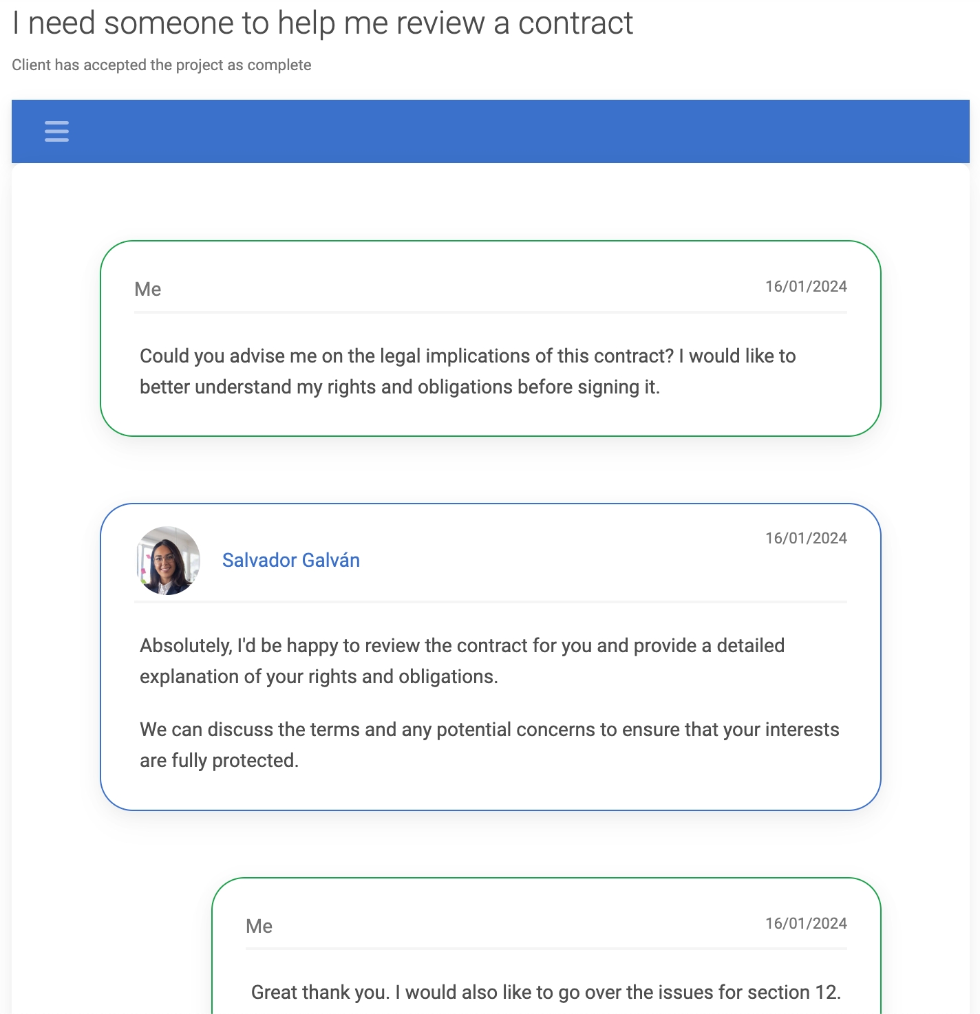 During the ongoing project, both the client and the advisor have the capability to engage in continuous messaging, as well as the exchange and sharing of documents with each other.